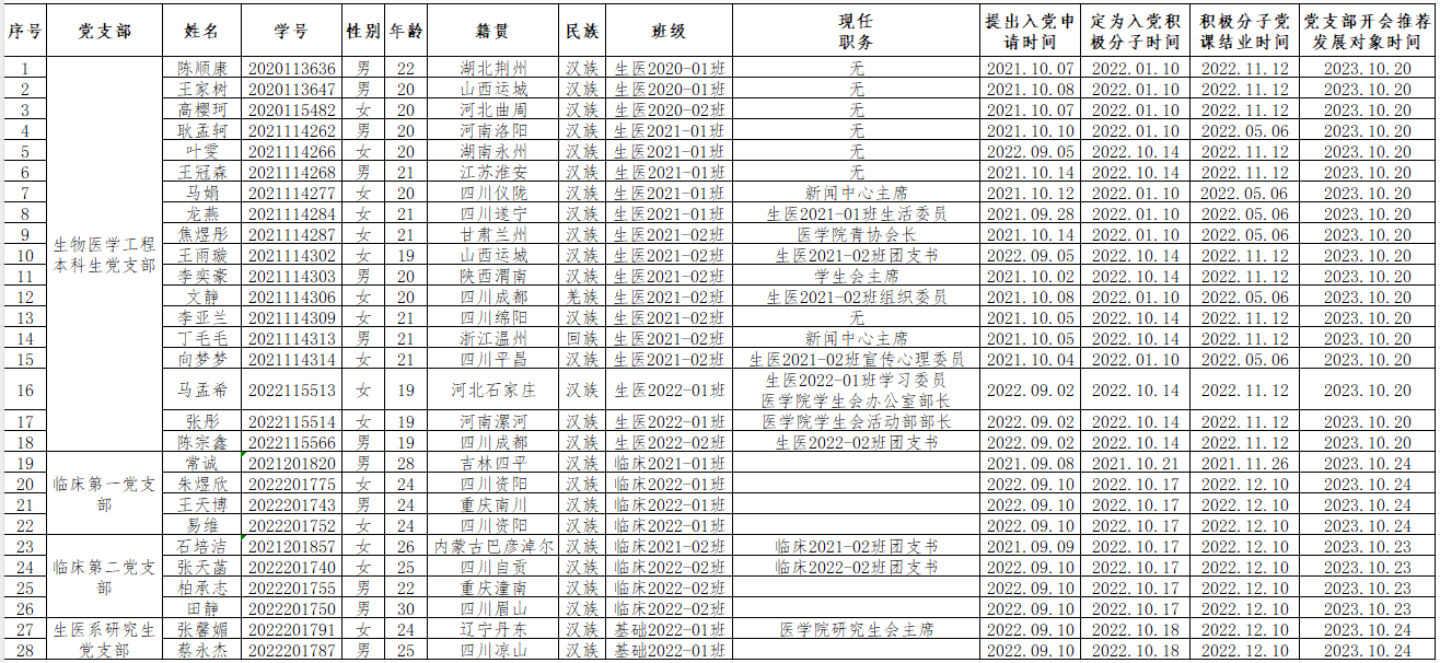 经班团组织推优、群众意见征集、党支部委员会/党员大会讨论,现将yl23455永利官网党委2023年第二批发展对象预备人选名单公示如下: