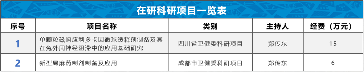 医工结合新型麻醉药物制备及其应用; 严重脊柱畸形患者围术期医学的基础及临床研究 |